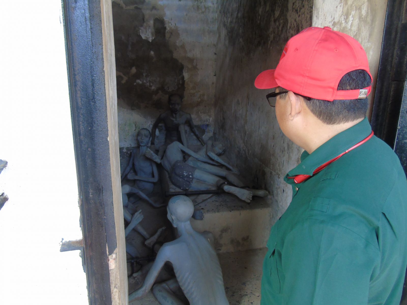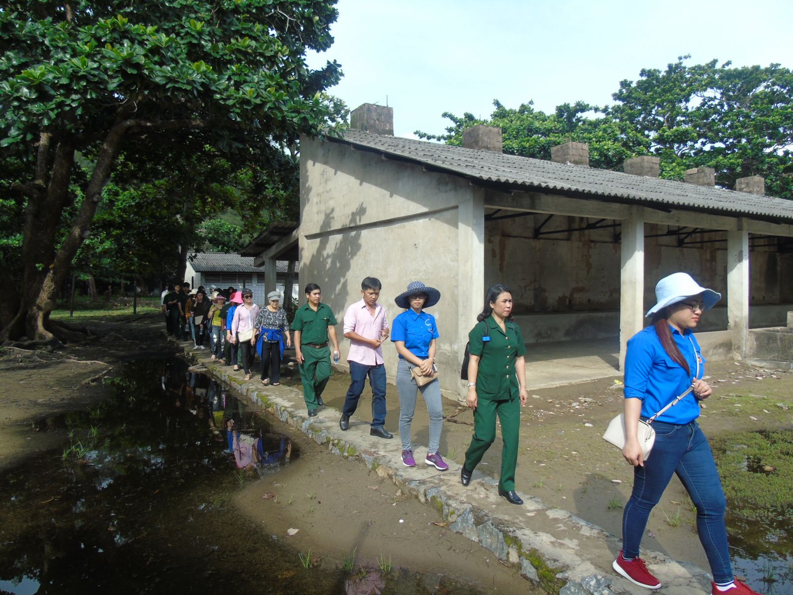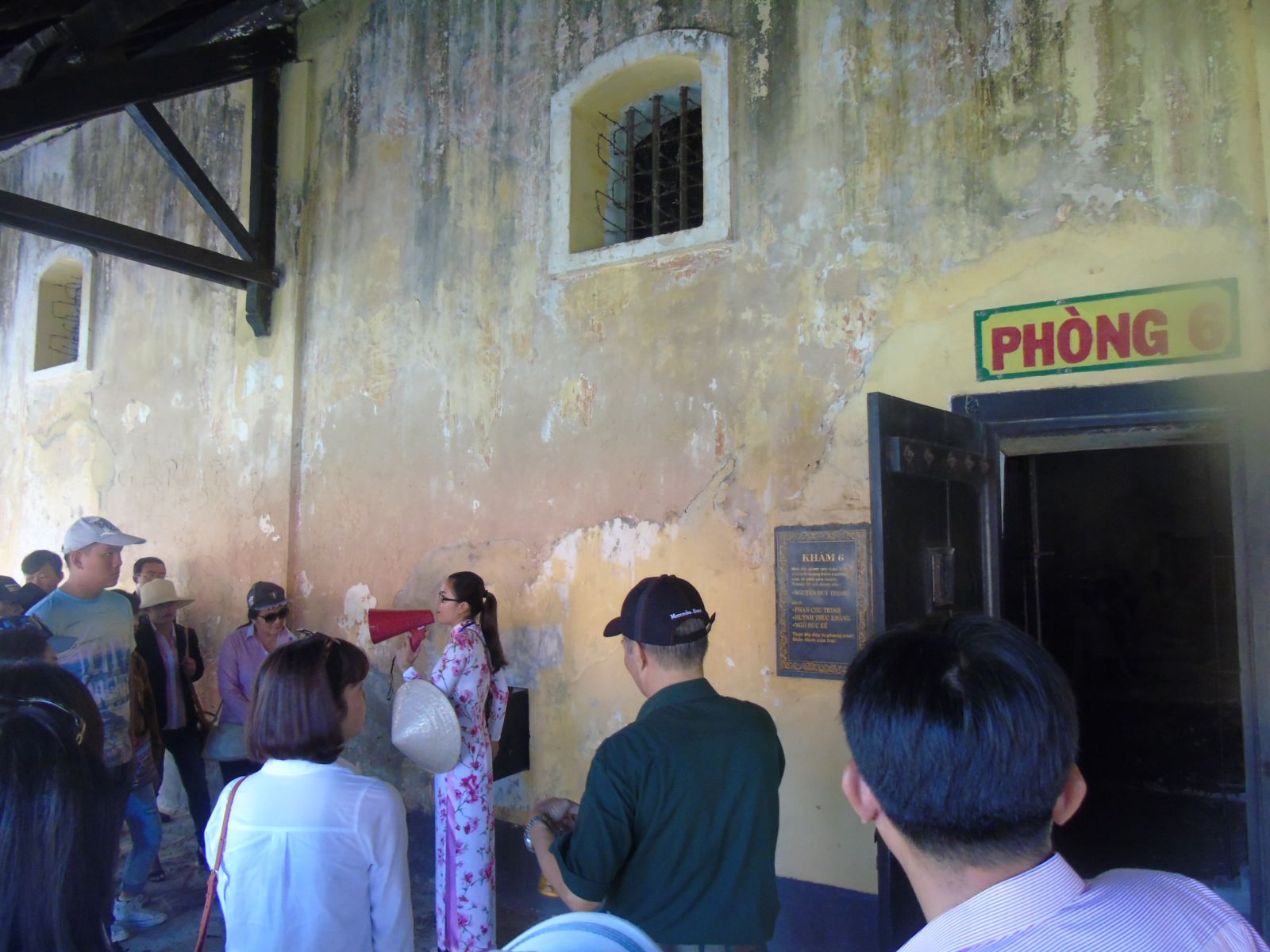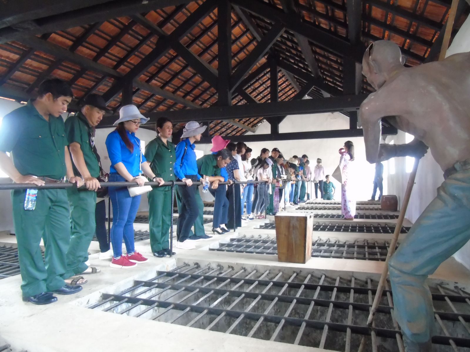 Đoàn tiến vào trong khu biệt giam để tham quan, tìm hiểu di tích "chuồng cọp" Mỹ.