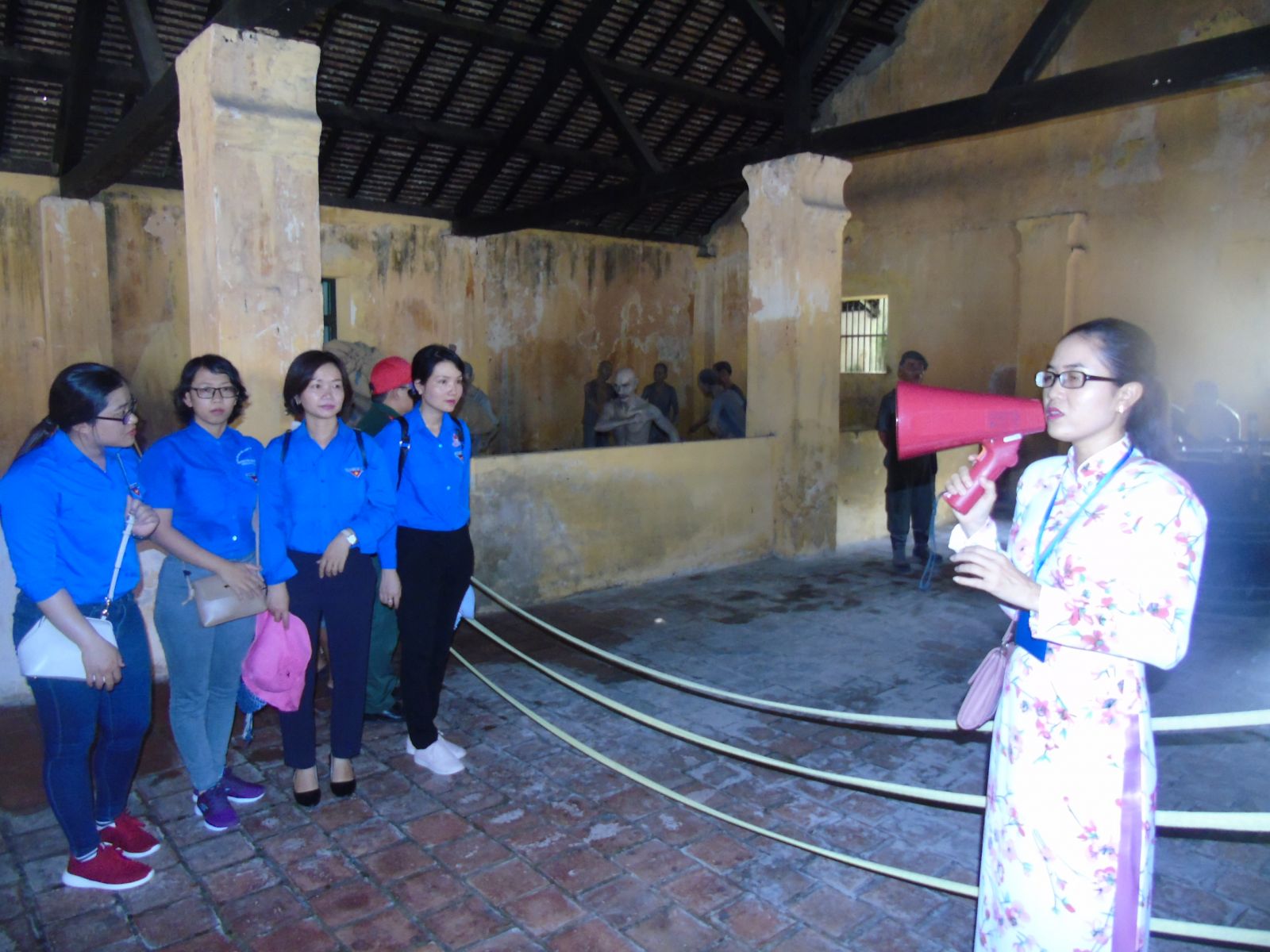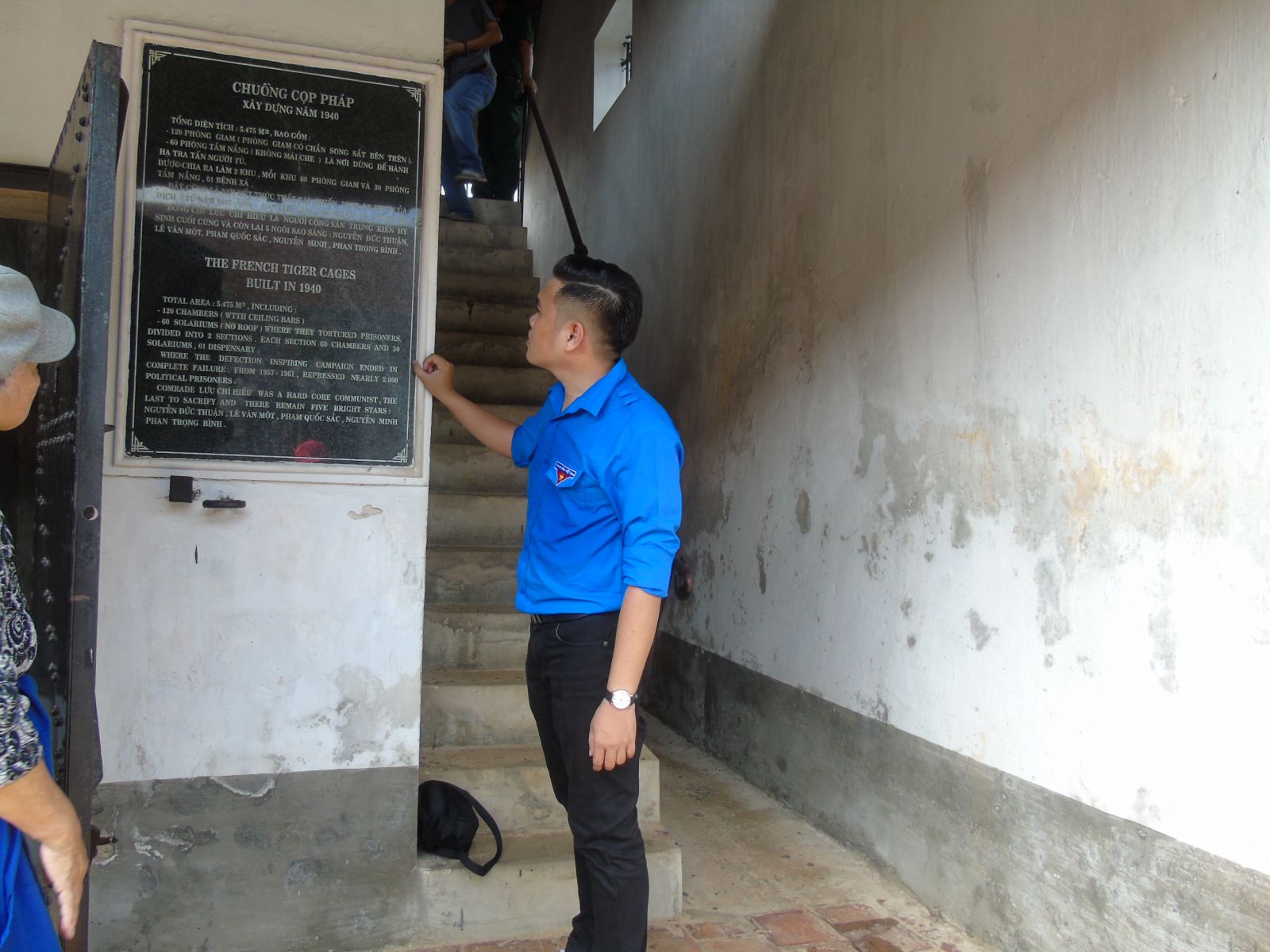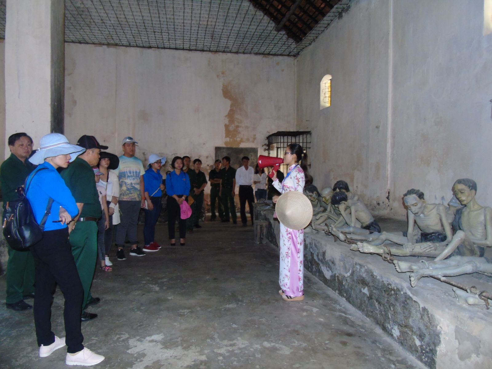 Thuyết minh viên trình bày về hệ thống nhà tù tại trại Phú Hải.
