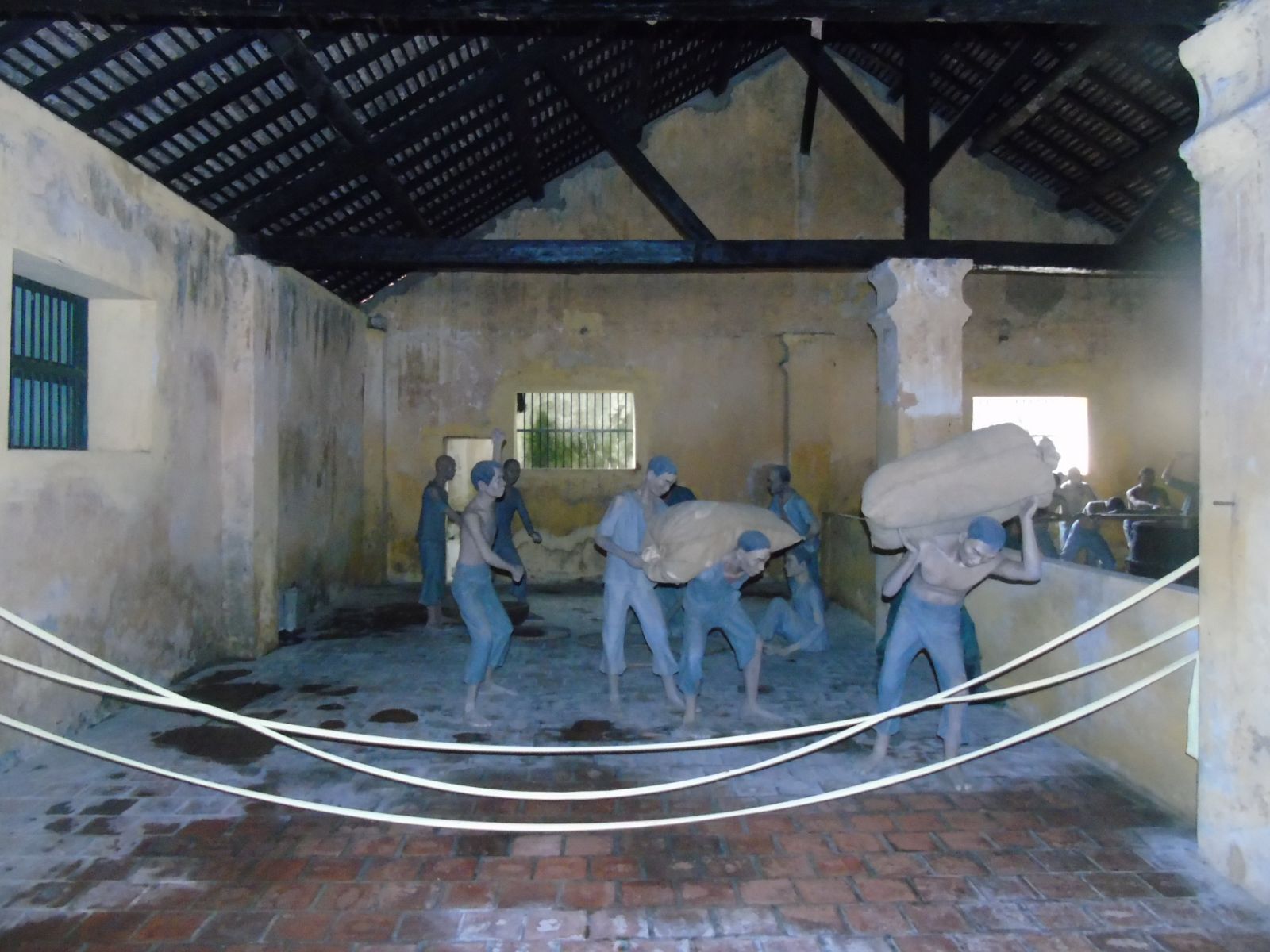 Khu phòng tắm nắng là nơi để thực dân giam giữ tù nhân giữa bốn bức tường đá, được bọc dây thép gai. Không chỉ bị tra tấn, họ còn bị lột trần quần áo, phơi nắng phơi sương cho đến chết.