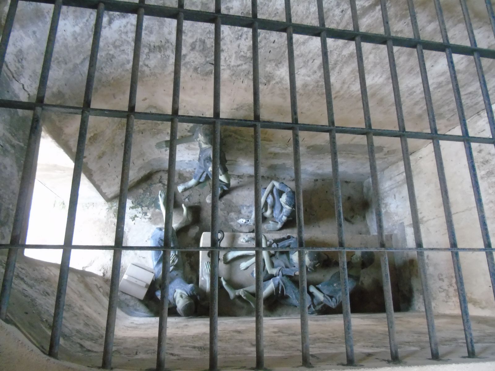 Khu bên dưới là những phòng giam có mái che được xây dựng với diện tích nhỏ, rộng 1,45 m, dài 2,5 m (khoảng 3,6 m2). Toàn bộ tù nhân đều bị xiềng xích, ăn, ở, vệ sinh trong buồng giam.