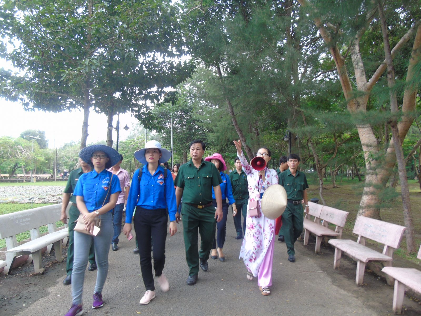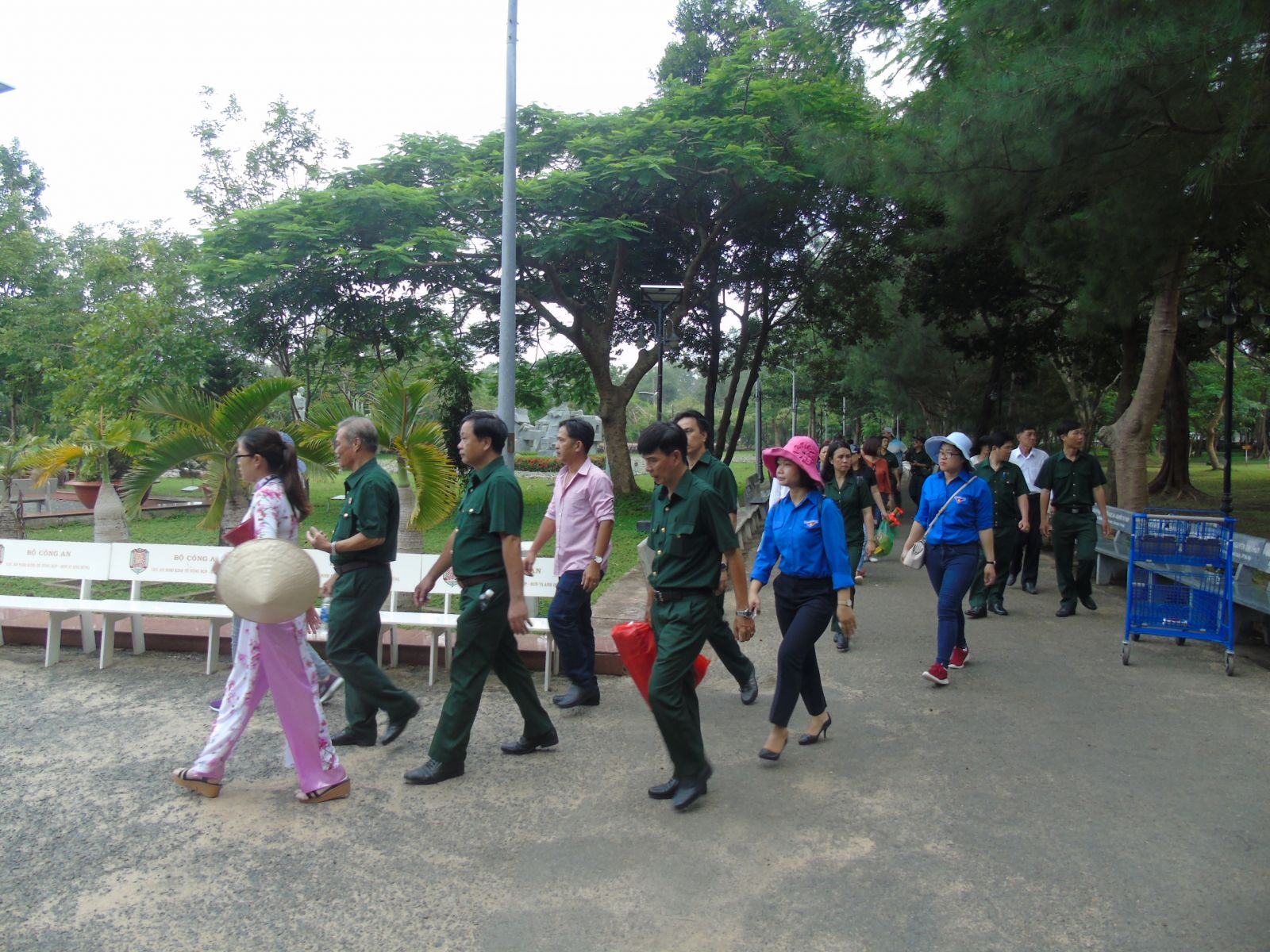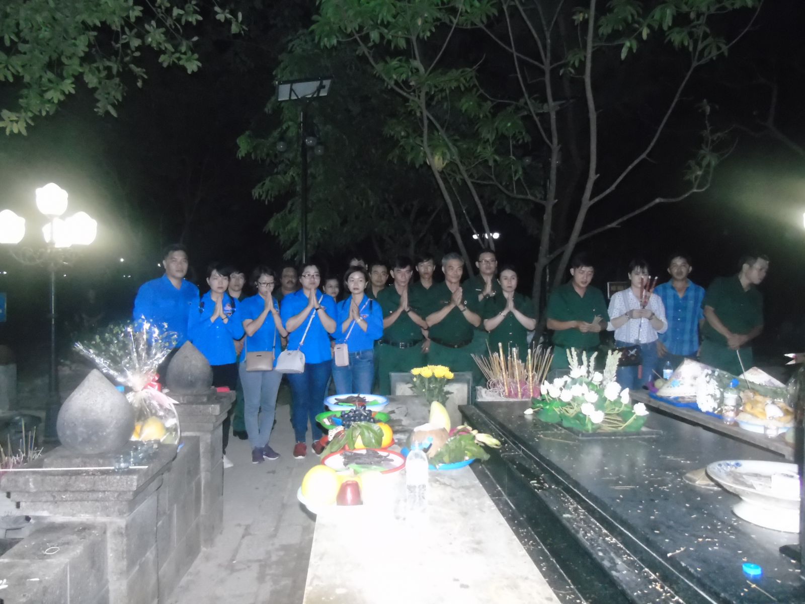 Đoàn theo sự hướng dẫn của thuyết minh viên tiến vào viếng nghĩa trang Hàng Dương.
