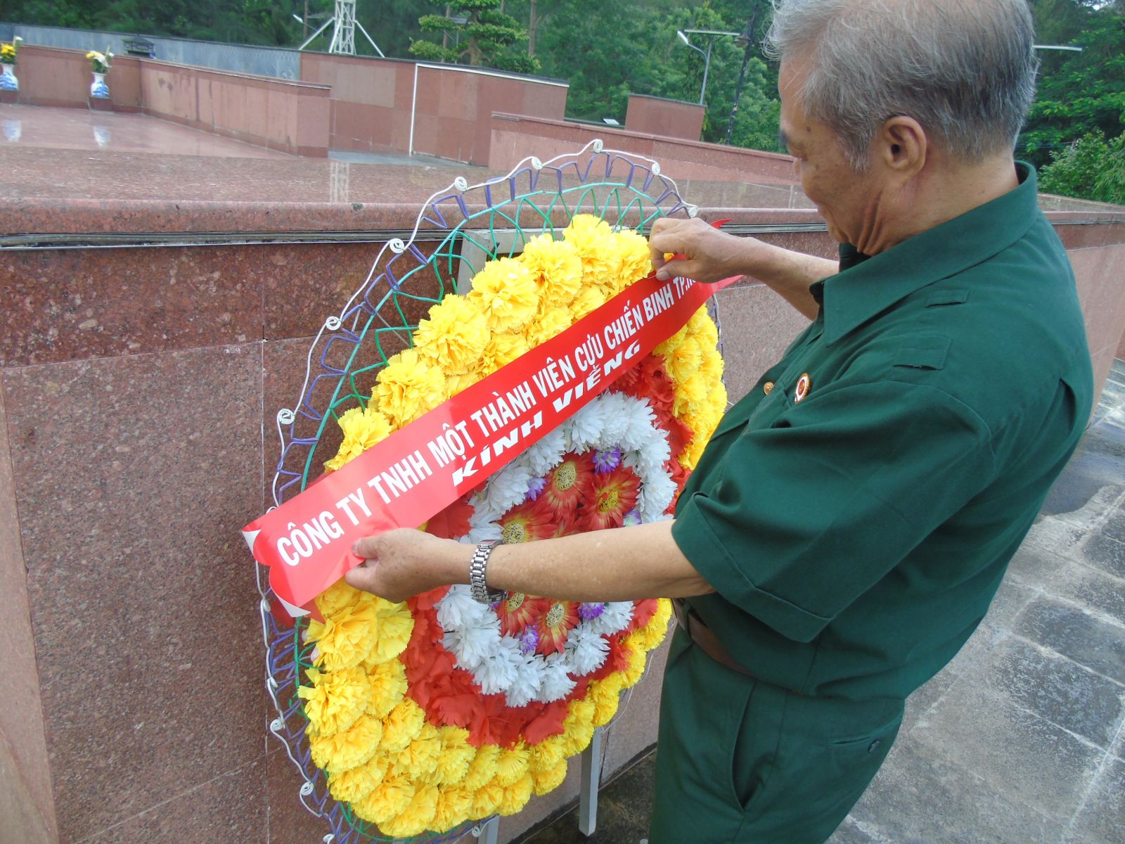 Vòng hoa Công ty TNHH MTV Cựu chiến binh TP. HCM kính viếng nghĩa trang Hàng Dương.