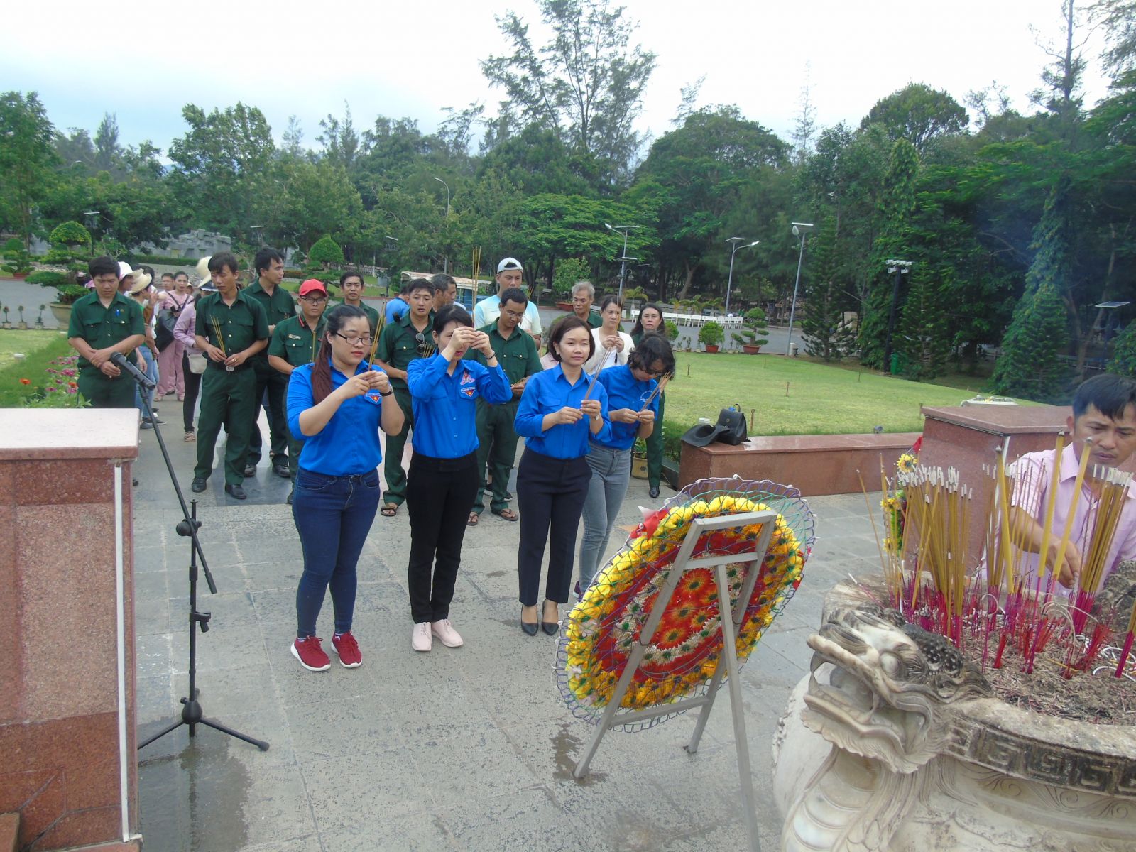 Đoàn dâng hương, dâng hoa lên mộ AHLLVTND Võ Thị Sáu để tưởng nhớ công lao của thế hệ đi trước.