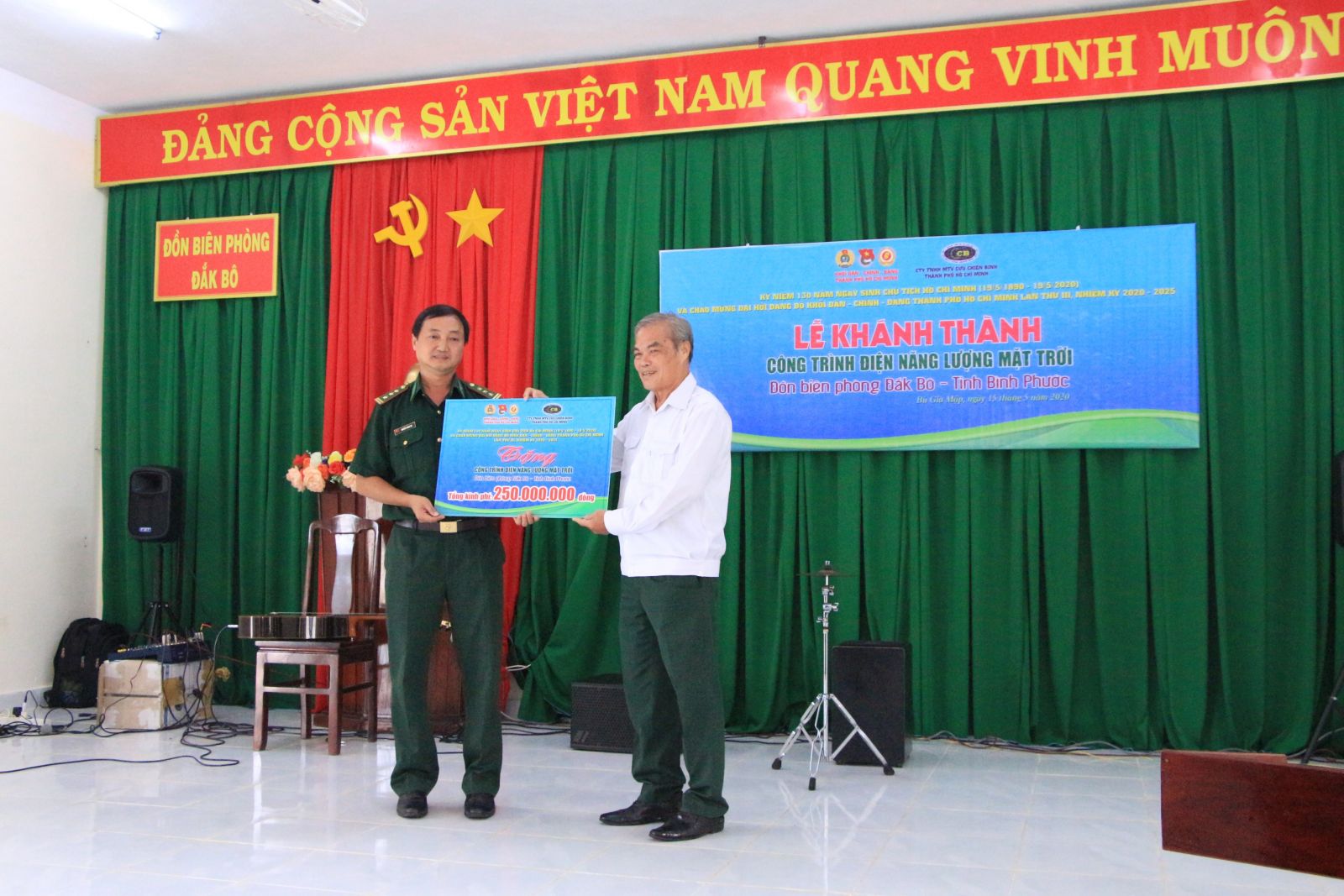 Nhân dịp kỷ niệm 130 năm ngày sinh Chủ tịch Hồ Chí Minh (19/5/1890 - 19/5/2020), chào mừng Đại hội Đảng bộ Khối Dân - Chính - Đảng TPHCM lần thứ III, nhiệm kỳ 2020 - 2025, hưởng ứng tháng Công chức Viên chức, Lao động lần thứ 12, Công đoàn Viên chức - Đoàn thanh niên - Hội Cựu chiến binh Khối Dân - Chính - Đảng TPHCM với sự tài trợ của Công ty TNHH MTV Cựu chiến binh TPHCM, đã tổ chức trao tặng hệ thống điện mặt trời cho Đồn biên phòng Đăk Bô trị giá 250 triệu đồng và 7 bộ sách bổ sung tủ sách chính trị, lịch sử cho cán bộ chiến sĩ bộ đội biên phòng trên địa bàn huyện Bù Gia Mập, tỉnh Bình Phước.
