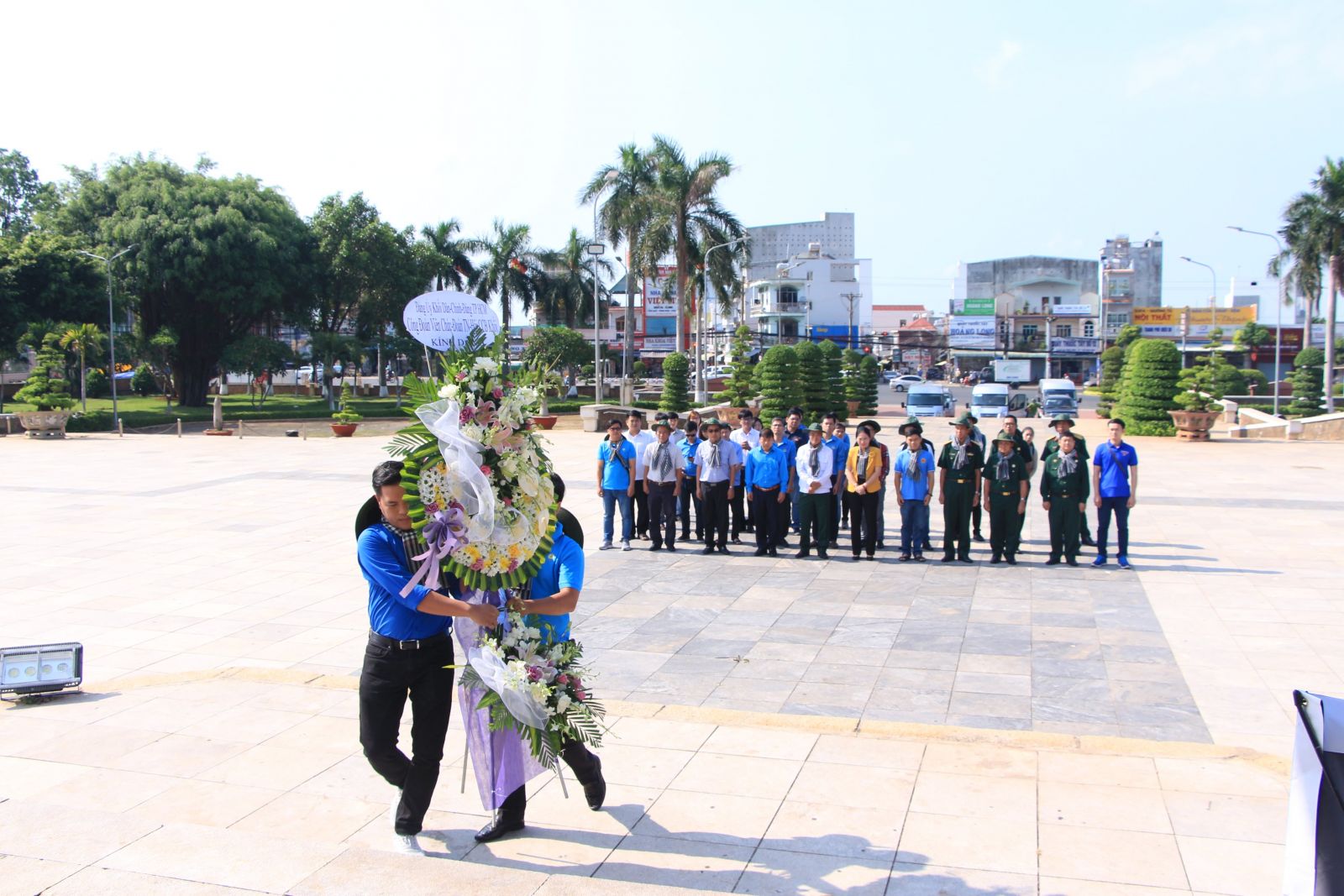 Đoàn dâng hương, dân hoa tại tượng đài chiến thắng Đồng Xoài, tỉnh Bình Phước.