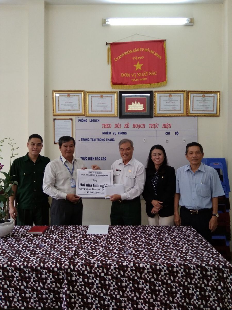 Tiếp tục thực hiện hoạt động chương trình tài trợ, trao tặng nhà nghĩa tình cho đồng đội, gia đình có hoàn cảnh khó khăn thường niên của Công ty Cựu chiến binh TP. HCM. Đồng thời, nhân kỷ niệm 72 năm ngày TBLS 27/7/1947 – 27/7/2019, Công ty Cựu chiến binh đã trao tặng 02 căn nhà tình nghĩa cho Quỹ đền ơn đáp nghĩa Quận 12 với trị giá 70triệu đồng/căn.