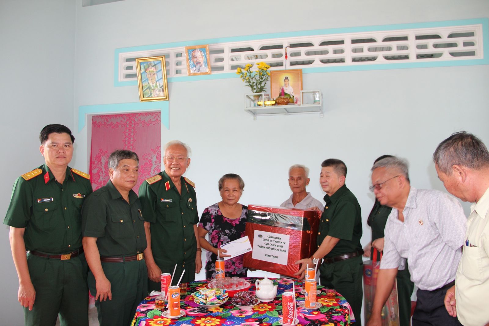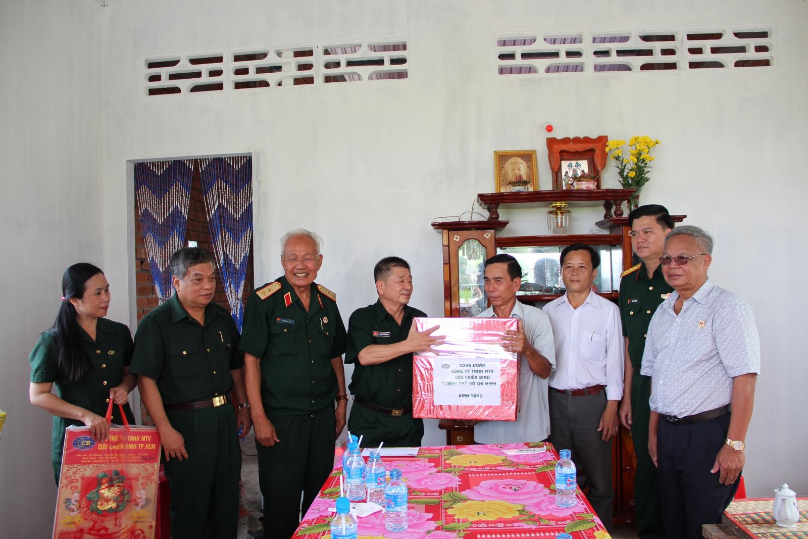 Đại diện Công đoàn và Ban giám đốc Công ty TNHH MTV Cựu chiến binh TP.HCM trao quà cho Hội viên Cựu chiến binh tỉnh Trà Vinh.