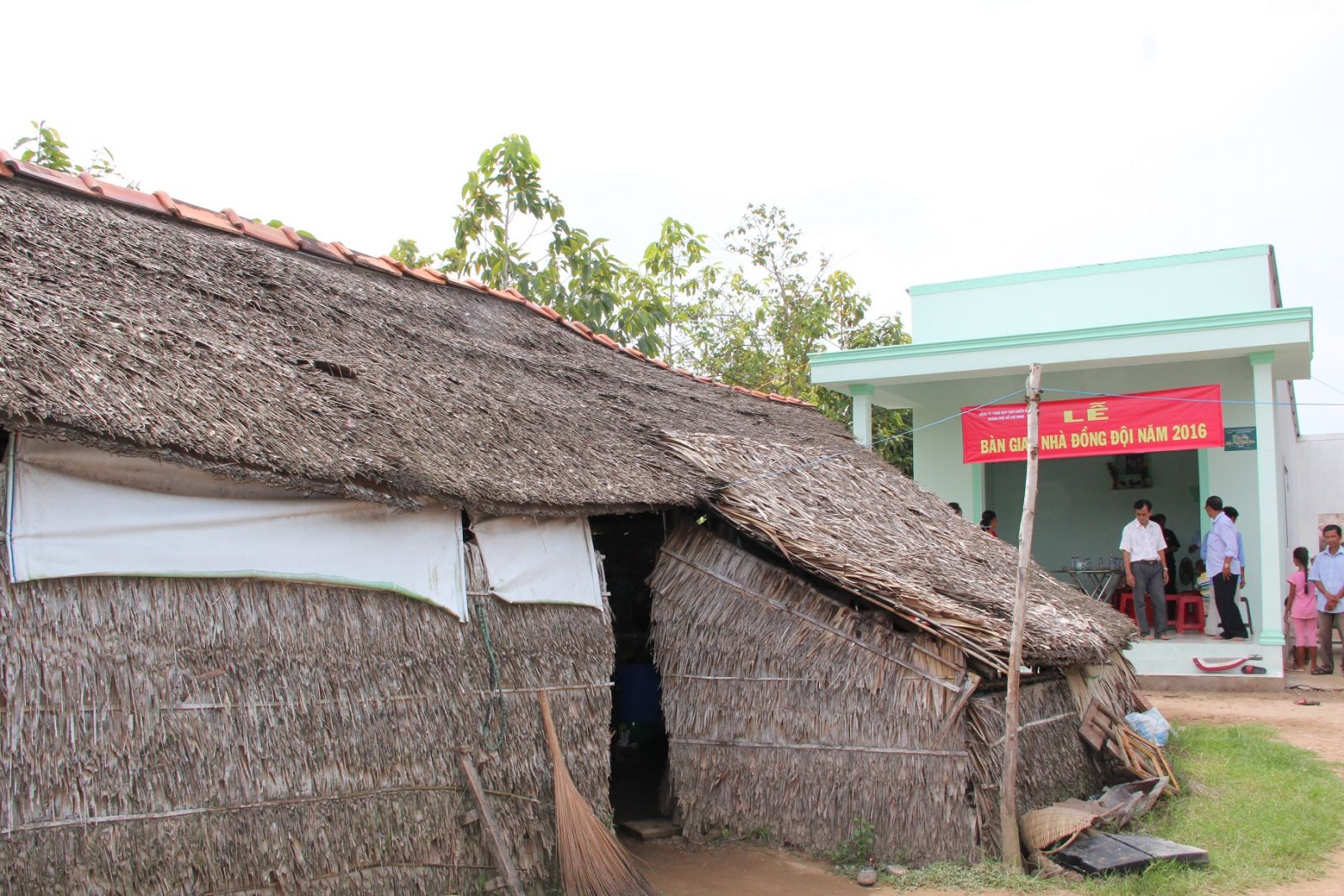 Nhà nghĩa tình đồng đội được xây dựng phía sau căn nhà tranh vách lá của đồng chí Phạm Văn Đạt.